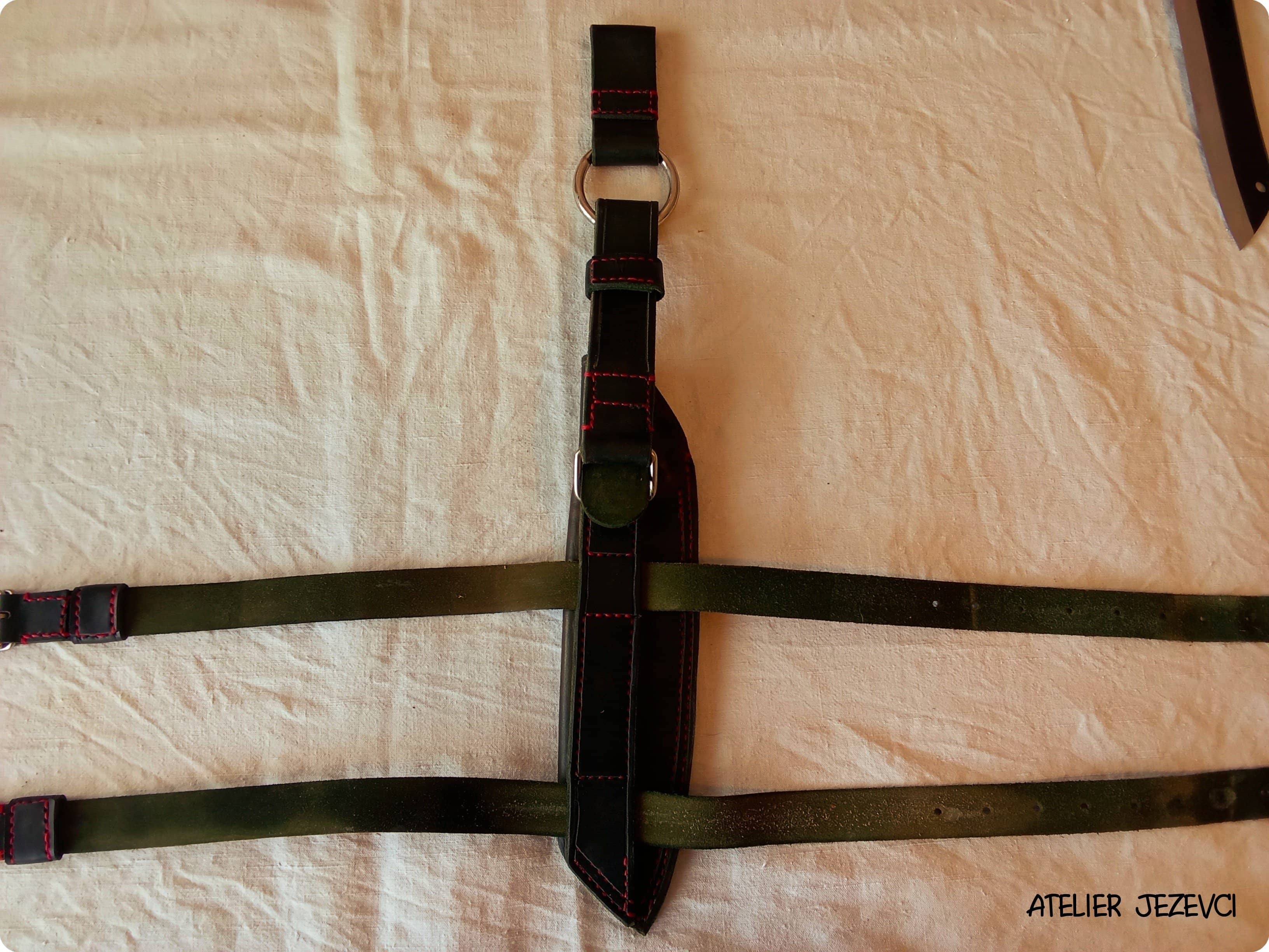 *Materiál : Silná třímilimetrová přírodní kůže,v tmavě zelené barvě.Odolná, drsná, nekompromisní.